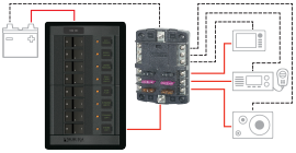 The ST Blade Fuse Block can offer a space saving and cost effective solution to adding circuit protection when there are limited available circuit breakers on the distribution panel. A single circuit breaker on a distribution panel can provide the circuit protection for the feed wire to the ST Blade Fuse Block. This is frequently done for electronics that each have their own ON-OFF switch and don’t require the switching offered by a circuit breaker. The 6 or 12 position ST Blade Fuse Block then provides a consolidated location for fuses for each of the electronics.