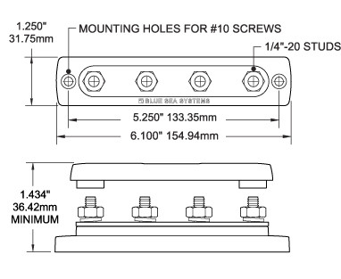 Common 150A BusBar - Four 1/4"-20 Studs with Cover