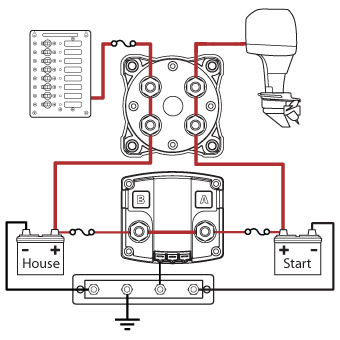 • Shares the charge between two batteries more efficiently than a battery isolator
