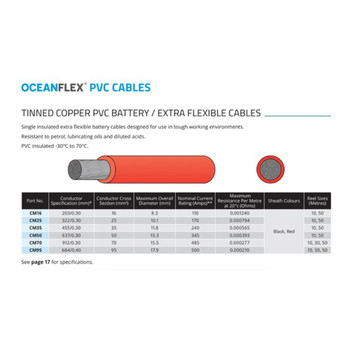 Current Stock: 954€7.82 - €43.70Oceanflex Marine Grade Battery Cable - Single insulated PVC coats, extra flexible battery cable designed for harsh marine conditions Single insulated extra flexible battery cables designed for use in tough working environments. Resistant to petrol,...€7.82 - €43.70 -