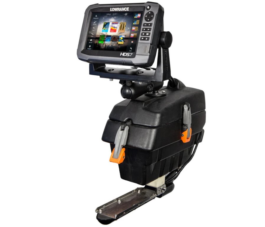 The removable sonar & electronics pod gives you a watertight, no‑drill mounting point for your fish finder and transducer — simply bolt your unit onto the pod, drop the transducer into the built‑in recess and keep the wiring tidy and protected