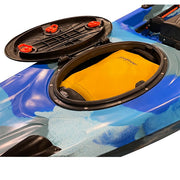 Hinged bow hatch is large enough to store a Railblaza C-Tug with Sandtrax wheels