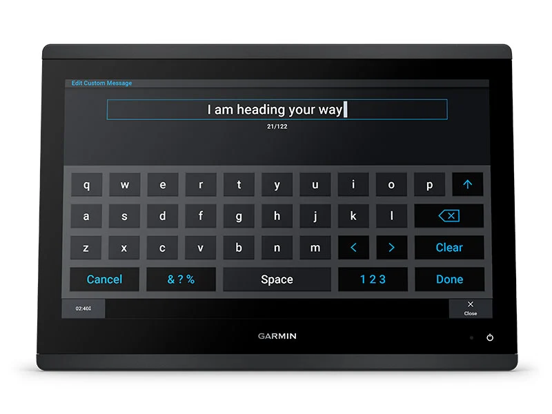Pair your inReach satellite communicator4 to your chartplotter, and type custom messages using your MFD’s on-screen keyboard. Access your contact list or enter an email, inReach address or phone number. You can also group messages by conversation for a texting-like experience.