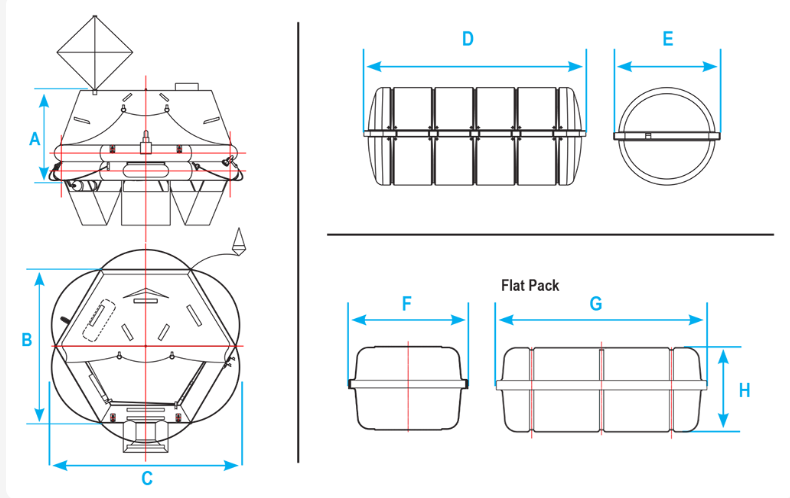 - Survival Pack Options: Equipped with SOLAS A or SOLAS B pack (depending on raft configuration).