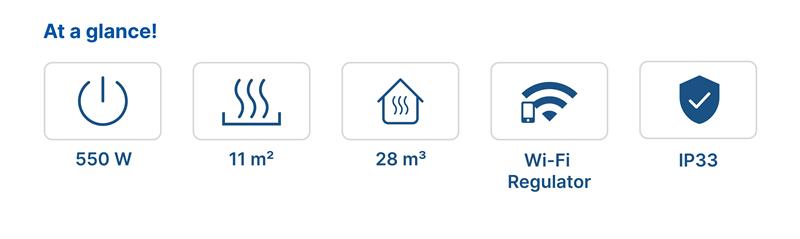 The TEPLOCeramic TCM-WF 550 is an economical ceramic heating panel designed to deliver balanced, energy-efficient warmth. It features the same performance characteristics as the TCM-RA 550 model but includes a built-in Wi-Fi module and digital thermostat for smart temperature control and 24/7 programmable operation.