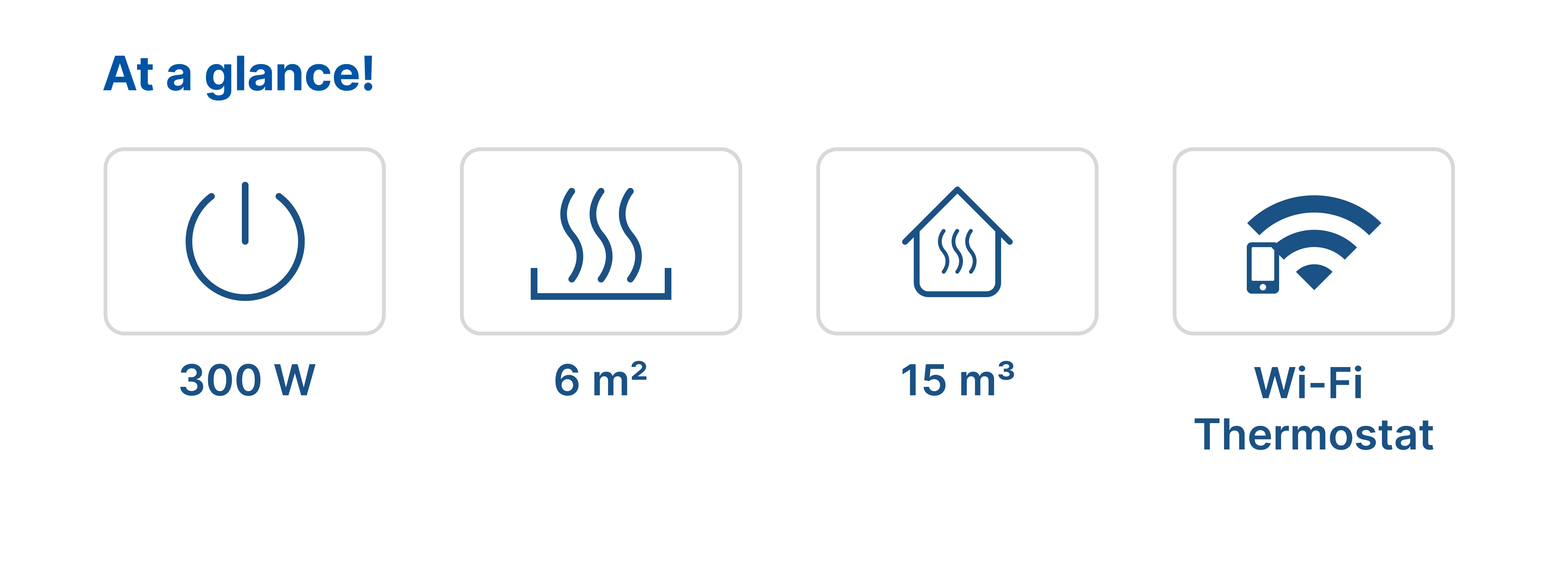 Equipped with a built-in Wi-Fi thermostat, the TCMT-WF 300 allows users to control temperature, monitor heating performance, and program a 24/7 operating schedule directly from a smartphone. Its intelligent control system improves convenience while supporting more efficient energy use in bathrooms, en-suites, and utility rooms.